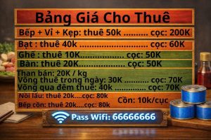 - Bếp + Vỉ + Kẹp: thuê 50k – cọc 200k